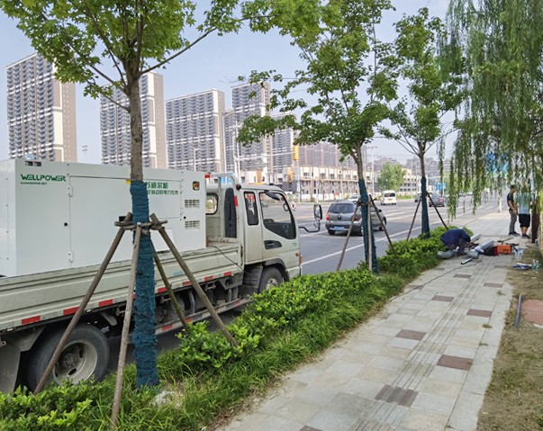 由于西部地區新建礦井大多處在比較偏僻的地方,地形復雜,交通不便,氣候條件惡劣,電網供電線路難以到達,無法滿足施工要求,此時可以使用柴油發電機組供電,柴油發電機組可以整體安裝在基礎上,固定使用,也可以裝在拖車上,供移動使用。